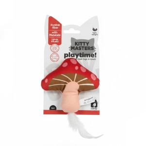 Mushroom -shaped plush toy filled with catnip and matatabi for double stimulation. Lightweight and made of durable fiber , with a feather tail that mimics prey...