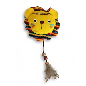 Lion-shaped plush toy filled with catnip and matatabi for double stimulation. Lightweight and made of durable fiber , it includes a tail with a cord, wooden beads, and a natural feather to...