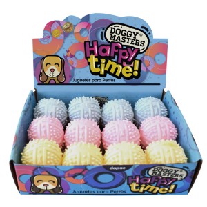 Doggy Masters Happy Time ball-shaped stimulator. Ideal for your dog\'s oral health. Diameter: 6.3 cm. Balls in pastel shades. The display contains 12 balls.