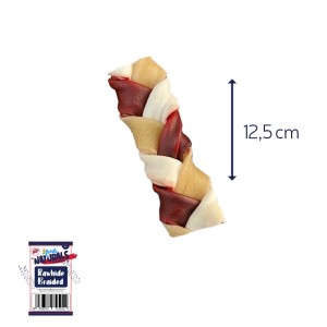 Fresh Naturals Braided Cowhide Dog Treat. 12 cm. Made with 100% animal protein. Hormone- and antibiotic-free. No added sugars. Gluten-free. Ingredients: natural beef hide.