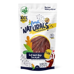 Fresh Naturals Duck Chips Dog Snacks. Made with 100% animal protein. Sugar-free, gluten-free, and hormone-free. Ingredients: duck. 100g zip-lock bag.