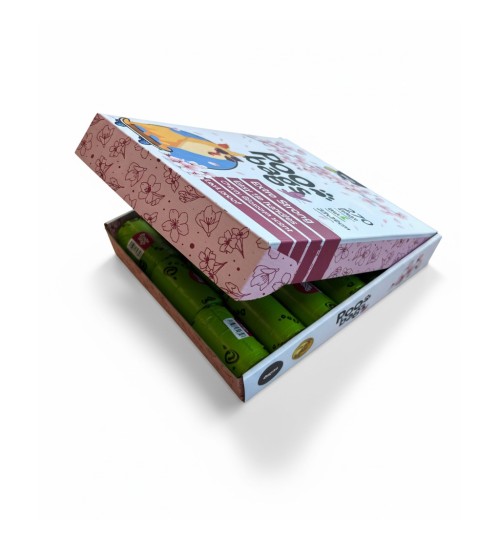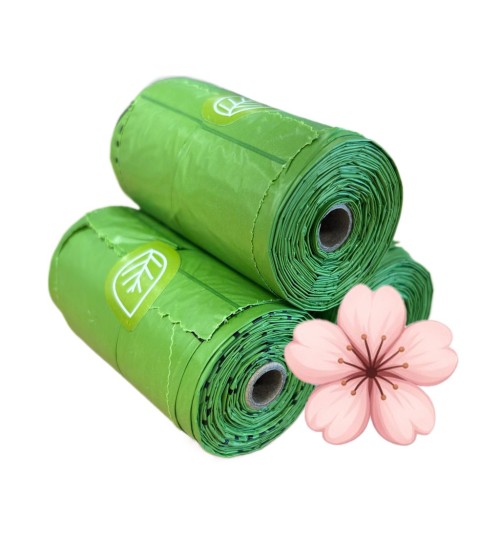 Sakura Poo Bags, The Poo Bags Experts, hygienic bags. With handles. Bag size: 23x36 cm. Cherry scent. 100% biodegradable green bags. Made with 50% recycled plastic and 50% plant fibers. Safety closure. The box...