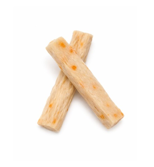 Chicken breast skewer snack on a rawhide base: crunchy at first and then chewy , ideal as a treat with no added sugar, hormones, or antibiotics. Use: occasional treat with supervision.