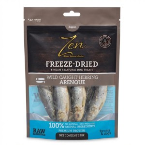 Freeze-dried herring snack for dogs and cats . 100% single ingredient, rich in omega-3 (EPA/DHA). Grain-free , crunchy, and highly palatable: use it as a treat or topper.