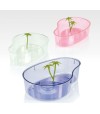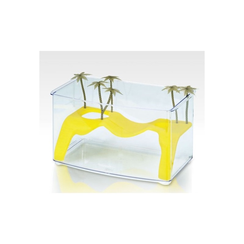 The turtle tank model comes in transparent color and has several palm trees on the sides as a decorative element. Its dimensions are 32.5 x 18.5 x 18.5 cm.