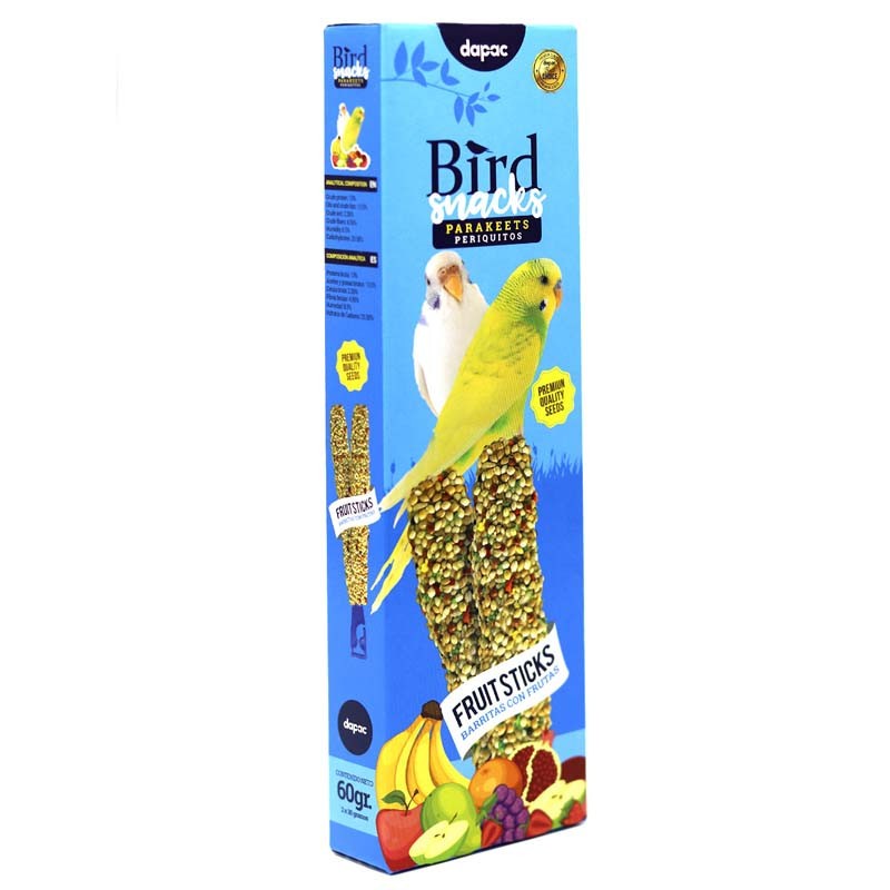 Shambi Dapac Fruit Bars for parakeets. Complementary food made with cereals, fruits, and honey. Provides vitamins for canaries. High-quality seeds. Ideal pastime. 60 g.