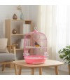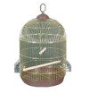 The A309G Mojácar cage is a cylindrical cage with a swing, a support bar, and a top hook for easy hanging. It is designed in gold and brown tones. Its dimensions are 33 x 53 cm.