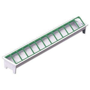 Plastic feeder with two outlets for chickens. Dimensions: 41 x 7.8 cm.