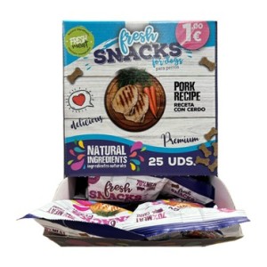 Fresh Snacks chicken bone-shaped dog treats. Especially suitable for overweight dogs or those prone to becoming overweight. Highly digestible. Ideal as a snack, treat, or reward. The bag contains 70 g. Order in multiples of 6 to include...