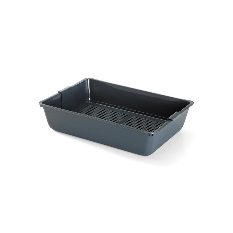 Open-sided cat litter box with sieve. Width: 42 cm. Standard colors. The sieve allows you to easily filter cat waste.