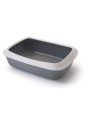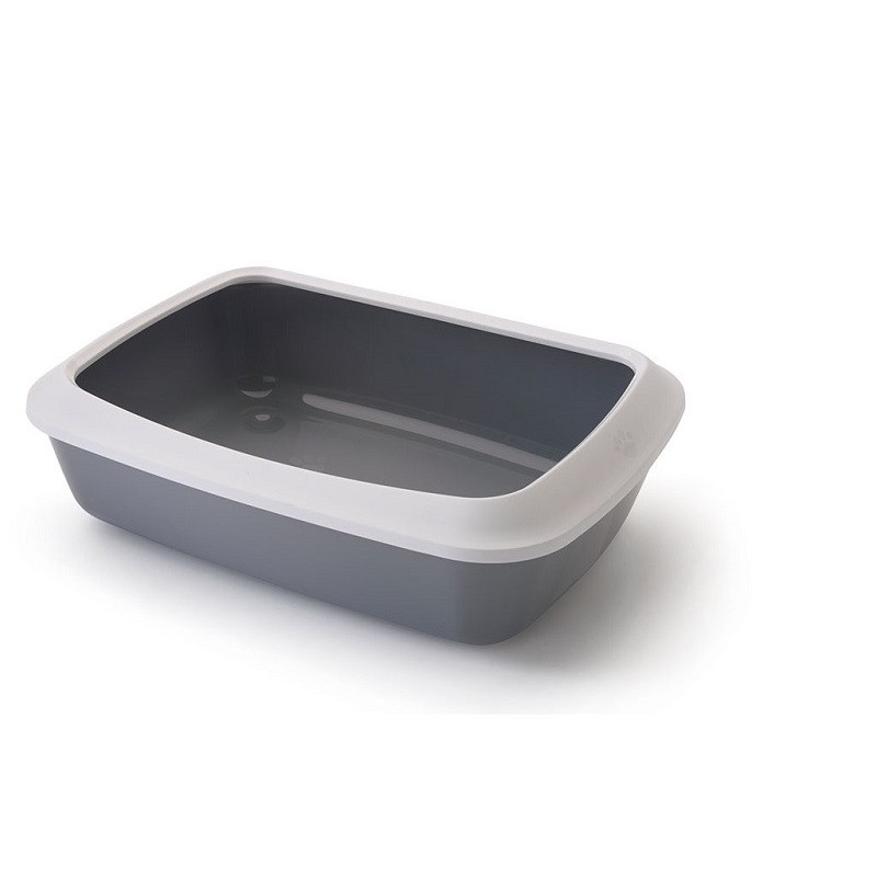 Litter box without lid or filters for cats. Iriz model in cool grey white with removable frame. Low entry height for easy access. Dimensions: 50 x 37 x 13 cm.