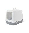 Oscar cool grey white litter box. With lid, swing-out door, and handle. Includes a replaceable filter to prevent unpleasant odors. Easy-to-open/close clips for cleaning the tray. Dimensions: 50 x 37 x 39 cm.