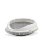Figaro white cool-grey oval litter box without a lid and a white frame. The oval shape gives your cat more space to do their business. Removable rim for easy cleaning. Dimensions: 55x48.5x15.5cm.