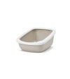 Extra-large cat litter box with rim and backrest. Suitable for cats that urinate backward or like to scatter after eliminating. Removable rim for easy cleaning. Dimensions: 67.5 x 48 x 28 cm