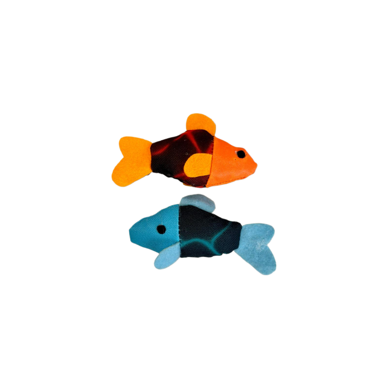 The 2-pack of fluorescent fish is a cat toy from the Kitty Masters Time to Play collection. It's a safe and durable plush toy filled with cotton and catnip, which keeps your cat active and entertained for a long time. They come in blue and orange and measure 45x38x20 cm.