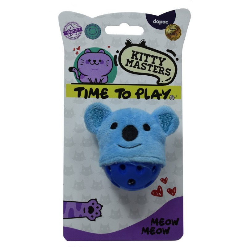 The blue plush koala ball is a cat toy from the Kitty Masters Time to Play collection. It's a safe and durable toy filled with cotton and catnip. This attracts cats, keeping them active and entertained for longer. The model is blue and measures 38 x 33 x 35 cm.