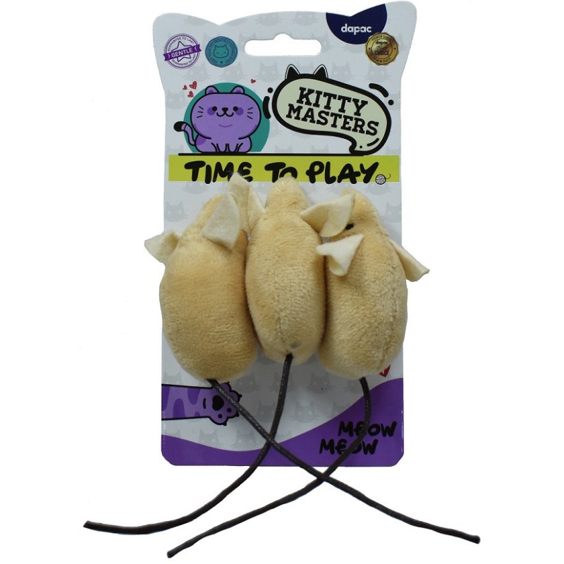 Kitty Masters Time to Play pack of 3 velvet yellow mice (19*3*3 cm)