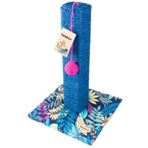 Twinbee tropical print cat scratcher. Dimensions: 30x30x42cm. Blue, pink.