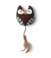 Lightweight plush owl designed for indoor hunting . It combines catnip and matatabi (silvervine) for a double olfactory stimulation. It features a tail with a cord, wooden beads, and a natural feather that adds irresistible movement and encourages chases and bunny kicks .