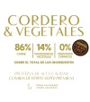 Super premium wet dog food. Pate with chunks of lamb and vegetables. Gluten-free and 100% free from genetic manipulation. 86% real meat, 14% plant-based ingredients, and 0% meat derivatives. Suitable for all ages and all breeds. The package contains 400 g.