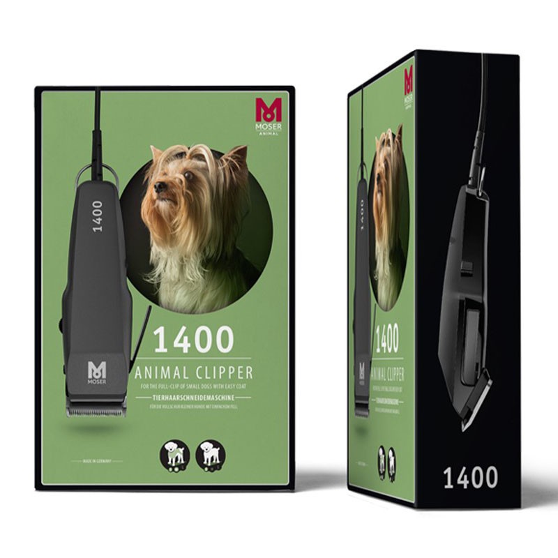Moser electric clipper for small dogs. It features a high-precision cutting head made of special steel. It has a cutting length adjustment: 6 fixed positions from 0.1 to 0.3 mm. It includes a 2-meter cable with an integrated hanger.