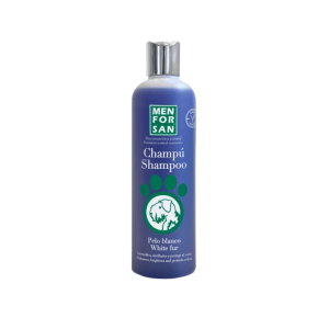 Men For San 300 ml Shampoo for White-Coated Dogs. Contains natural extracts that enhance white and light-colored hair (Poodle, West Highland Terrier, Sky Terrier). This shampoo removes unsightly gray and yellow stains from your dog's coat, providing shine without the use of chlorine or harsh chemicals. pH balanced.