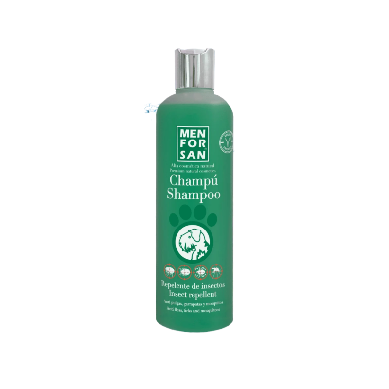 Citronella shampoo for dogs. Eliminates all types of parasitic insects (fleas, ticks, bedbugs, mites) from the coat during the wash process. Its citronella-based formula acts as an insecticidal protector, repelling all types of insects after washing. Suitable for all breeds.