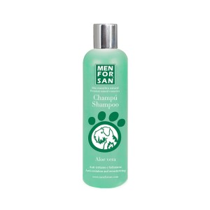 Shampoo with Aloe Vera extract for dogs that activates and revitalizes skin cells, exerting a deep soothing, healing, and moisturizing action. Aloe vera has natural antiseptic and healing properties. Recommended for irritated skin, insect bites, superficial wounds, rashes, and eczema. It deeply moisturizes and is very useful for sensitive and damaged coats. It can be used as a hair strengthener due to its nourishing agents, providing softness, strength, and flexibility. Suitable for all dog breeds and for frequent use. pH balanced. 300 ml.