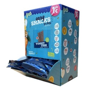 Easy Snacks Yummy Fish Fish Sticks for dogs. The recipe contains fish, fruits, and vegetables. Ideal as a treat or reward. The bag contains 100g. We recommend ordering in multiples of 150 to ensure they come with a protective box.