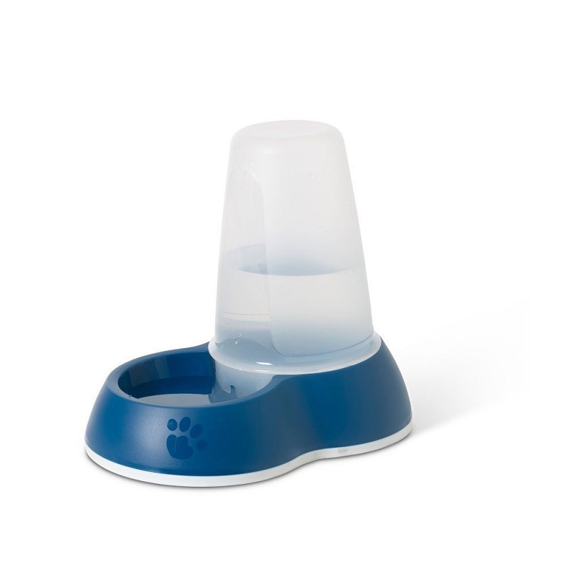 Loop water dispenser for dogs, cats, or small animals. Capacity: 3 liters. Petrol blue. With non-slip rubber rim for added stability. Dimensions: 21 x 14 x 18 cm.