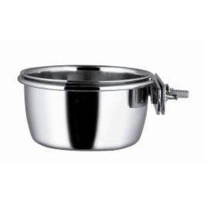 This stainless steel container serves a dual purpose: feeder and waterer. It features a hanging hook and is 10 cm in diameter.