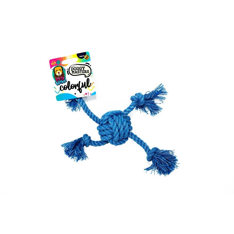 Colorful Doggy Masters 4-knot jute ball. Measures 8x25 cm and weighs 70-80 g. Dog toy.