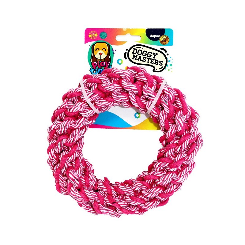 Colorful Doggy Masters pink braided hoop. Made of jute. Measures 18 cm and weighs 240-250 g.
