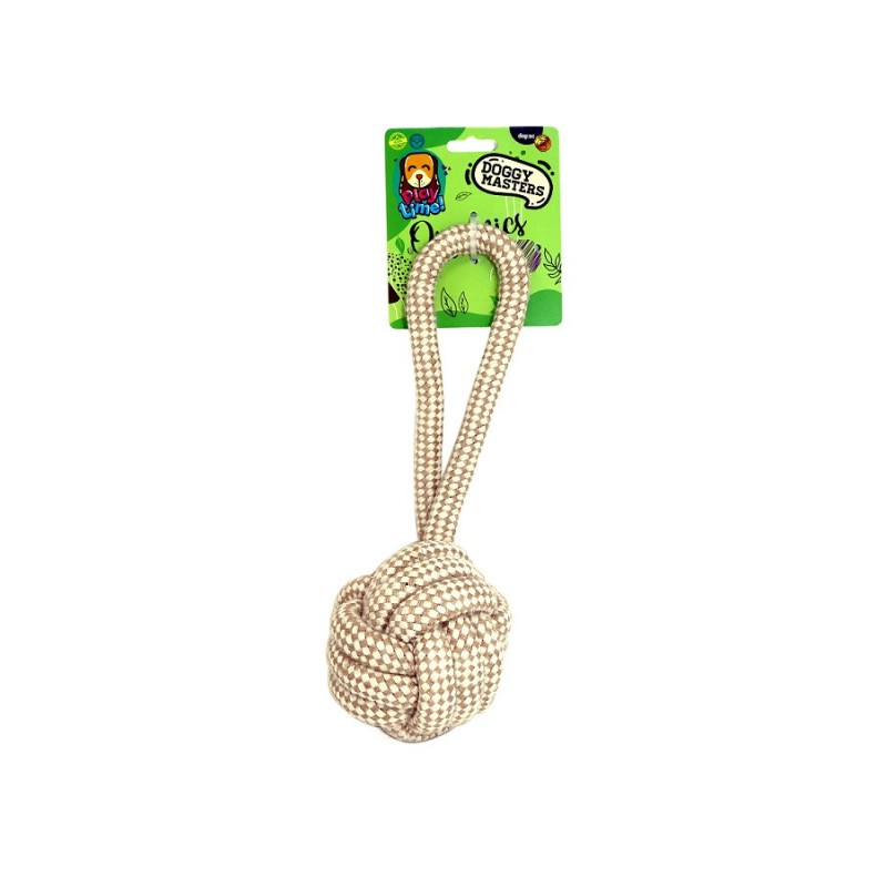Natural jute tug ball. This toy belongs to the Organics line by Doggy Masters. It measures 9 x 18 cm and weighs 130-140 g. It is a toy designed especially for dogs.