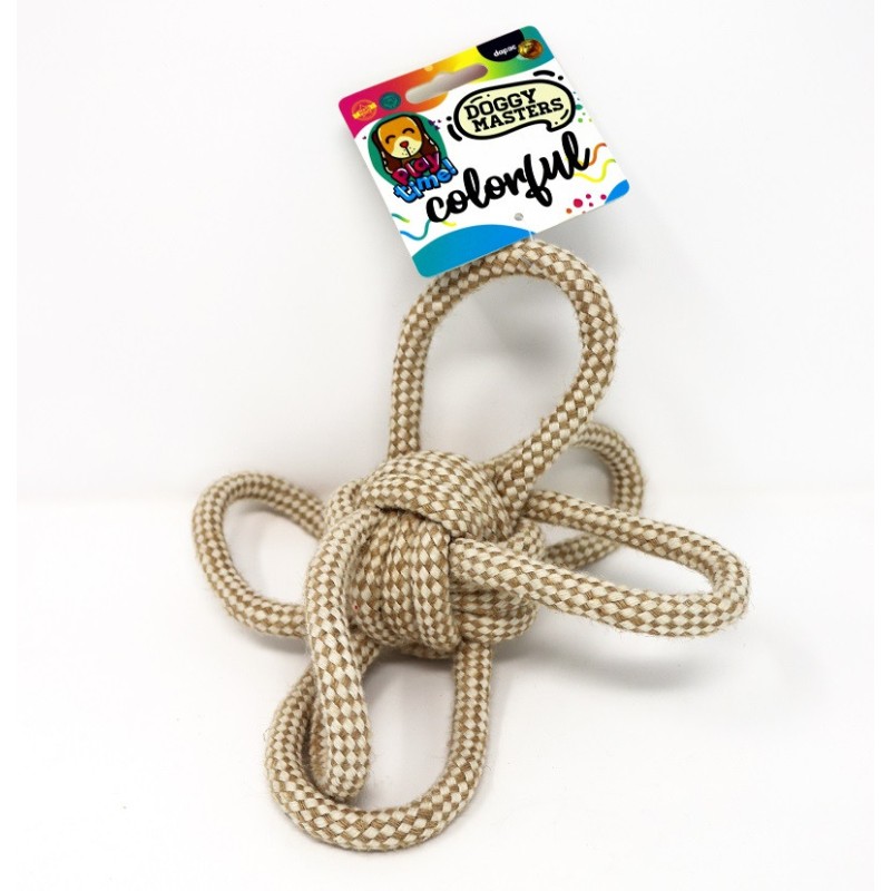Natural-colored jute ball with 6 knots. Part of the Doggy Masters Organics collection, it measures 23 cm and weighs approximately 100-110 g. It is a toy designed especially for dogs.