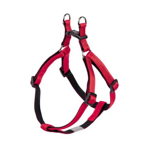 The Extreme model harness in black is small and measures 40/45-60 cm. It features a nylon handle and a steel ring to attach the leash itself or to the car seatbelt. The harness fits around the neck. Suitable for all types of dogs.