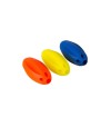 Sumplast dog rugby ball. Scented, durable, and buoyant. Assorted colors. Diameter: 8.8 cm.