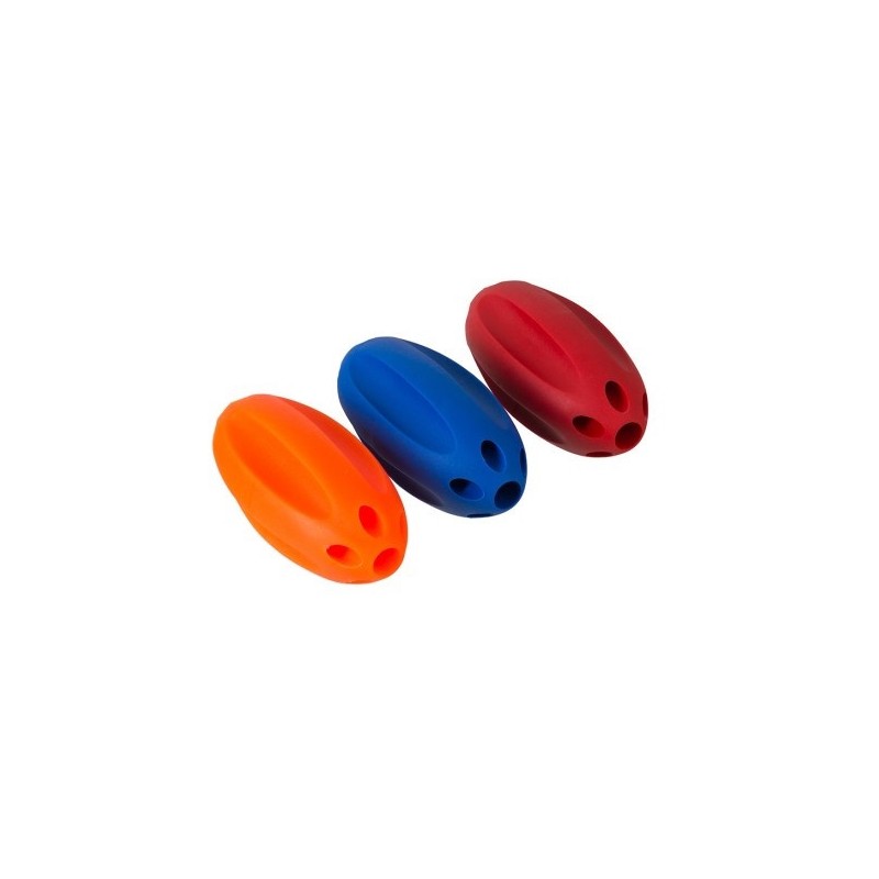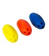 Sumplast dog rugby ball. Scented, durable, and buoyant. Assorted colors. Diameter: 14 cm.