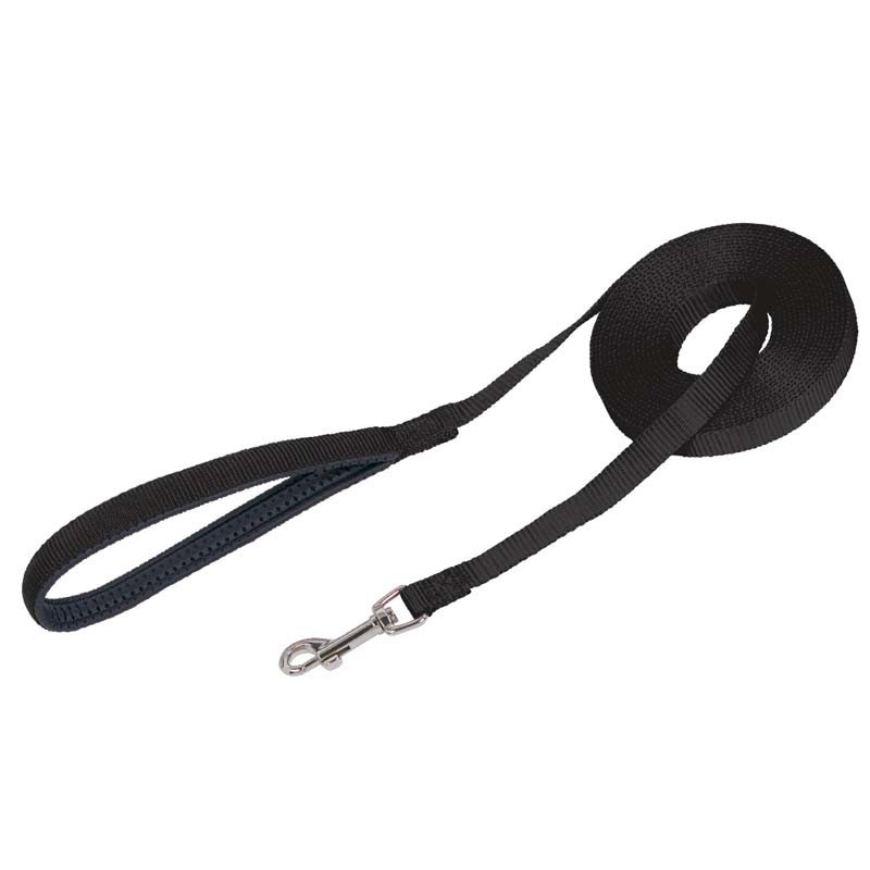 Flat nylon tracking leash. Measurements: 15mm x 10m. Black. Suitable for dogs.