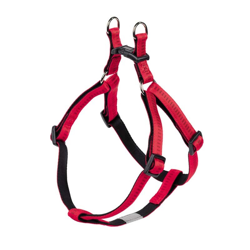 Nylon harness. Soft grip. Red. Measurements: 25 mm x 64-86 cm. For dogs.