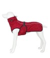 Red waterproof fabric dog coat. With reflective piping. Size 2XL. Measurement (nape of neck to base of tail): 51 cm.