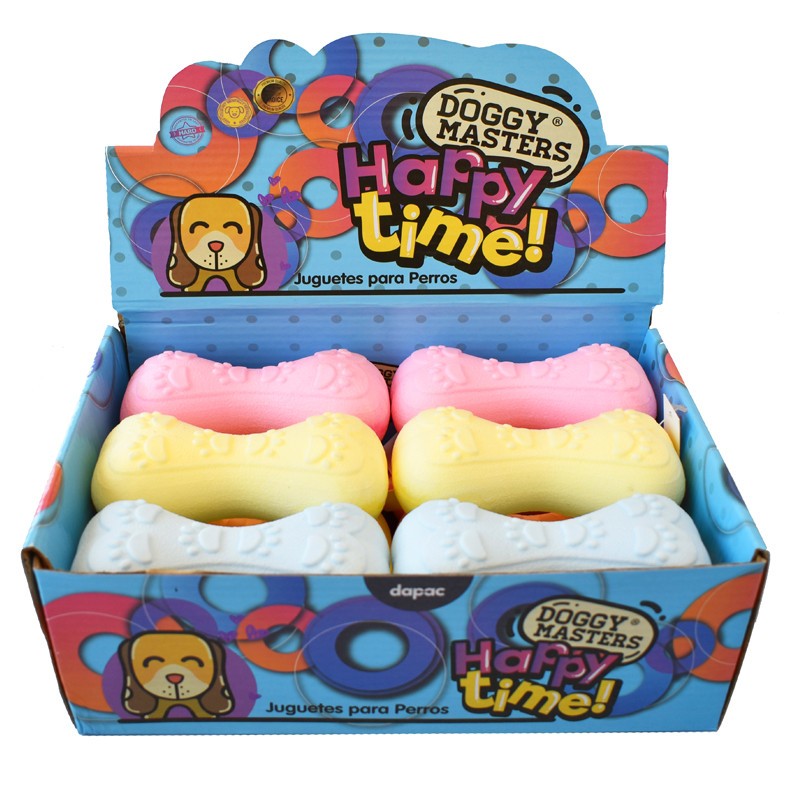 Doggy Masters Happy Time Bone Toy for Dogs, Enjoy and Relax. Ideal for their oral health. It also keeps them entertained. Bone dimensions: 12.5 x 5 cm. The display contains 12 pieces.