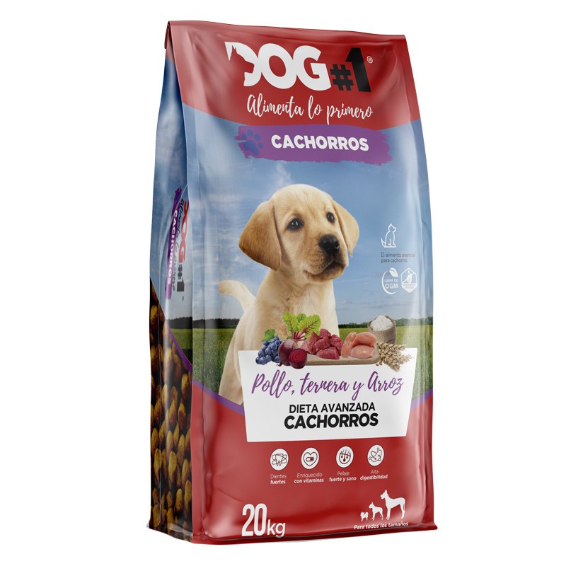 Complete food for puppies up to 12 months old. Enriched with vitamins, strong and healthy coat. High digestibility. Strong teeth. GMO-free. No artificial preservatives. 20 kg size.