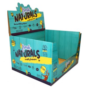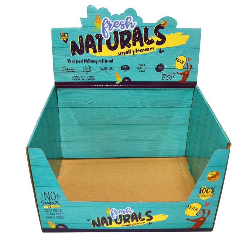 Display box for Fresh Naturals snack range: shrink-wrapped pressed bones, knotted bones, smoked bones...