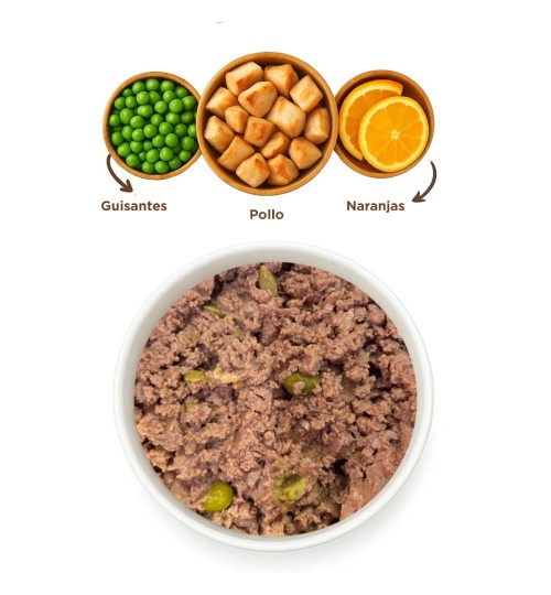 Complete super-premium wet dog food. Salmon and vegetable recipe. Made with natural ingredients. Real turkey as the main ingredient. 97% digestibility . 97% animal protein . 5% fruits and vegetables. 0% grains . 100g size. Ultra-hypoallergenic.