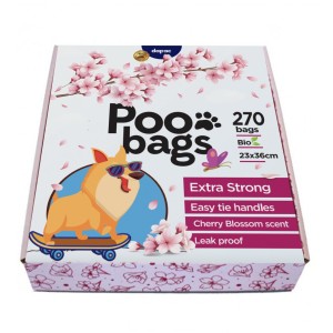 Sakura Poo Bags Cherry Blossom Scent 18x15 Thick Biodegradable (270 Bags) (With Handles)