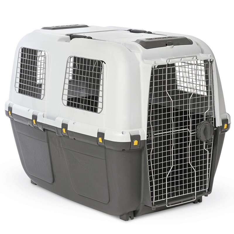 Transport cage for dogs and cats. Approved for air travel, in compliance with IATA air transport standards. Dimensions: 118 x 80 x 88 cm.