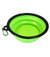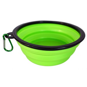 Foldable food and water bowl for dogs and cats. Perfect for traveling. Ultralight. Flexible, leak-proof. Easy to clean. Dishwasher safe. Diameter: 18 cm. With aluminum hook for easy transport. Colors: blue and green.