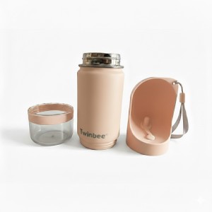 • Materials : Stainless steel bottle/thermos; BPA-free plastic bowl; food-grade silicone cap; high-density food-grade plastic bottom container.