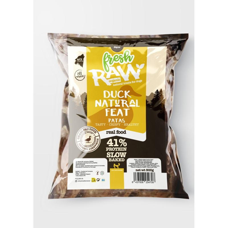Fresh Raw Duck Legs, a natural dog snack. Perfect for maintaining good oral health, 41% protein. Crunchy (very sensory for dogs). The bag contains 30 pieces (approx.). Approx. 15 cm in size.